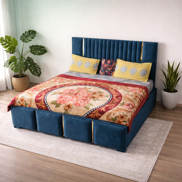 Double Bed with Mattress (Navy Blue)
